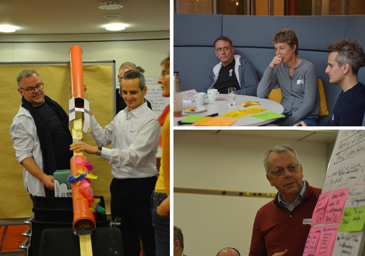 Der zweite Tag des colLab-Events 2019 steht im Zeichen der Arbeit an eigenen Themen. Die zentrale Frage: Wie können Menschen, Teams und Organisationen in der VUCA-Welt wirksam sein? Die Eindrücke von Tag 1 hallen nach und sind das Fundament, um mit Freude, Wertschätzung und viel Neugierde an jenen Fragen zu arbeiten, die die Teilnehmenden selbst einbringen, zum Beispiel: Wie können implizites Wissen und emotionale Nähe bei der Gestaltung zukunftsfähiger Organisationen helfen? Wie kann Führung den Weg in die Selbstorganisation begleiten? Welche Hebel gibt es, um Geschäftsmodelle entlang der Anforderungen der VUCA-Welt weiterzuentwickeln? Wie gelingen mehr Nachhaltigkeit und Zukunftsorientierung in Organisationen und in der Gesellschaft? Die Themen sind so vielfältig wie die Perspektiven, die dabei zusammenkommen. Und am Ende steht immer die Frage: Was bedeutet das für mich und mein Handeln?